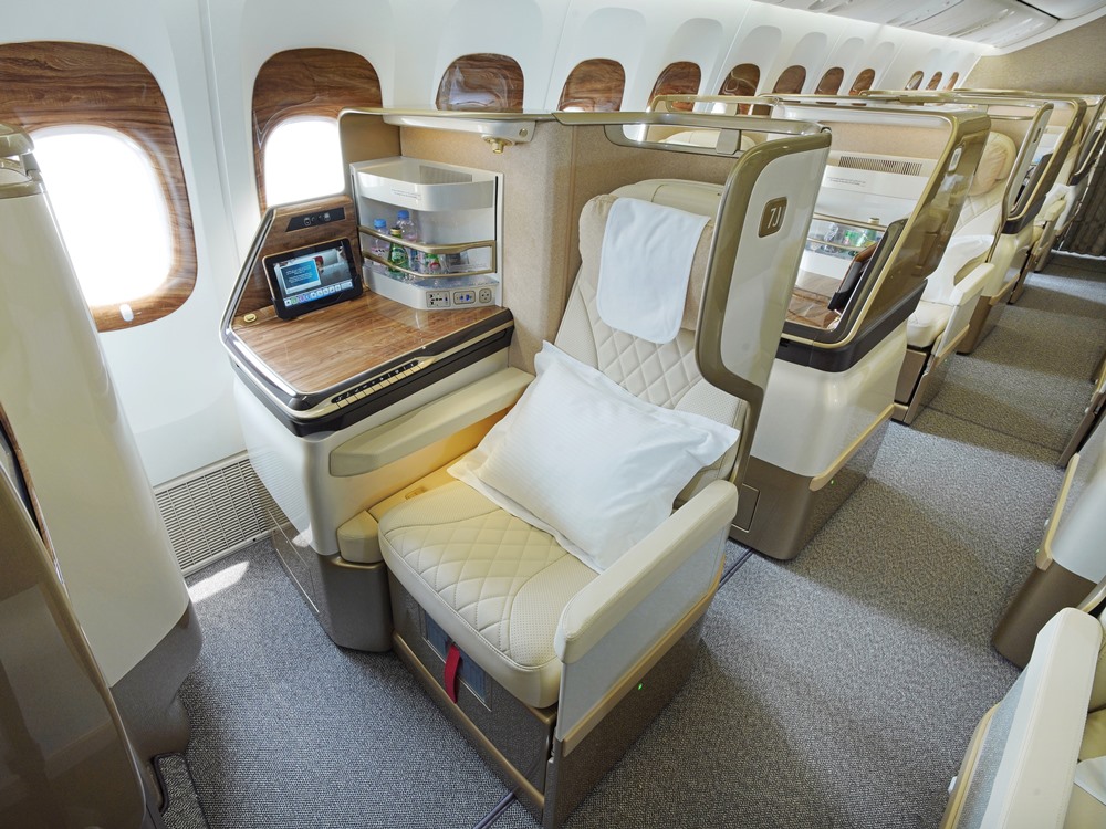 وقد بدأت أولى طائرات طيران الإمارات من طراز بوينج 777 مرحلة التجديد الشامل في أوائل شهر يوليو الماضي، حيث تمت إعادة تشكيل مقصورة المسافرين في الطائرة، لإفساح المجال للدرجة السياحية الممتازة الجديدة، والتي تضم 24 مقعداً موزعة على ثلاثة صفوف بتوزيع 2-4-2. وتتكامل المقاعد الجلدية ذات اللون الكريمي، مع لمسات نهائية من الألواح الخشبية الأنيقة في جميع أنحاء المقصورة، وتوفر هذه المقاعد راحة معززة مع تخصيص مساحة 38 بوصة لكل منها، كما تتميز المقاعد البالغ عرضها 19.5 بوصة بإمكانية إمالة ظهرها بمقدار 8 بوصات ما يوفر مساحة أكبر للتمدد والاسترخاء، بالإضافة إلى تجهيزها بمساند رأس قابلة للتعديل في 6 اتجاهات.