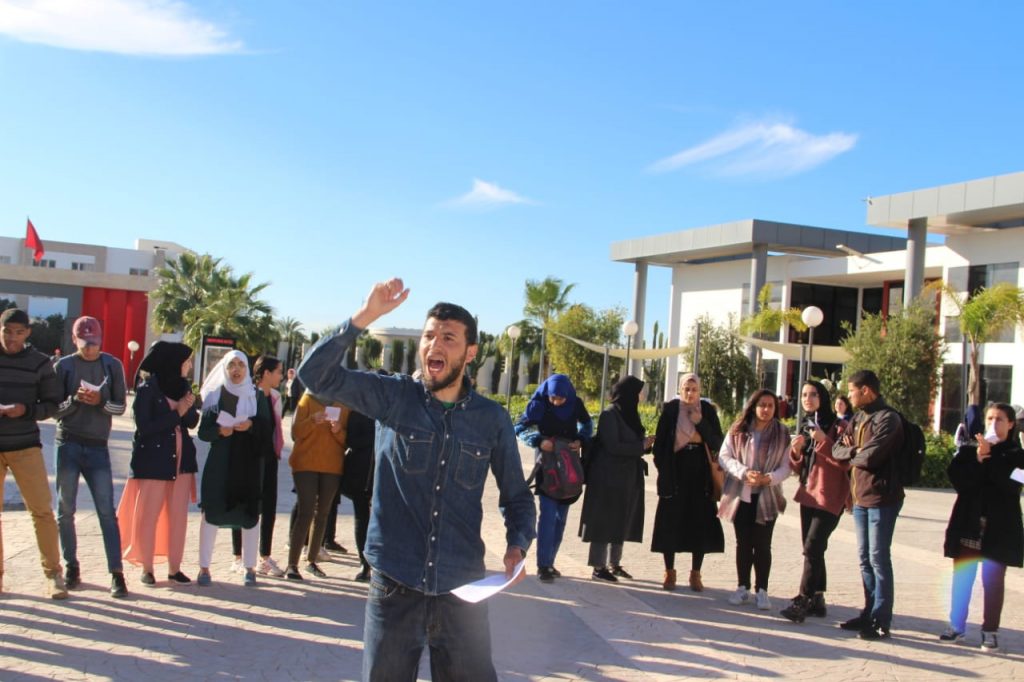 وأمام مماطلة إدارة المدرسة الوطنية للعلوم التطبيقية، فقد دخل الطالب بدر الدين القشابي في اعتصام مفتوح حتى الحصول على حقه، الذي صرح لنا من خلال مكالمة هاتفية أنه ليس مسألة شخصية بقدر ماهو قضية طلابية، و هاهو يواصل اعتصامه ليومه الخامس على التوالي، كما تخلل الاعتصام وقفة احتجاجية يوم أمس الثلاثاء قادتها لجنة متابعة لقضية الطالب بدر الدين القشابي التي أطلقت حملات تضامنية على فايسبوك تحت شعار “بغيت نقرا”، مع إضراب إنذاري عن الطعام خاضه المعني لمدة 24 ساعة.