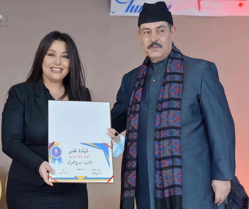 حظيت النجمة التونسية يسرا محنوش، بتكريم خاص من لدن الاتحاد التونسي للشغالين الشبان، كأفضل فنانة عربية، حيث تسلمت الجائزة من يد الفنان الكبير لطفي يوشناق، وذلك بحضور عدة شخصيات تمثل مجالات الفن والإعلام.