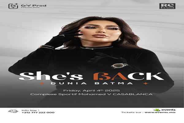 ويرتقب أن تطل بطمة على محبيها في الدار البيضاء، بحفل فني كبير سيقام يوم الجمعة 4 أبريل 2025، في القاعة المغطاة بالمركب الرياضي محمد الخامس، بتنظيم شركتي “GY pro” و”Rc events”.