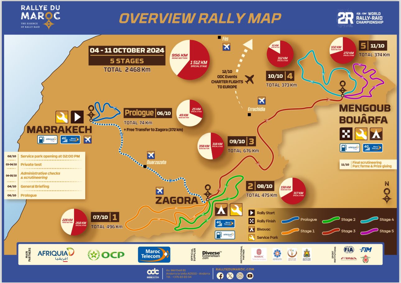 تحت الرعاية السامية لصاحب الجلالة الملك محمد السادس نصره الله، تنطلق من مدينة مراكش النسخة الخامسة والعشرون من رالي المغرب، الذي سيقام خلال الفترة من 4 إلى 11 أكتوبر. هذا الرالي يشكل الجولة الخامسة والختامية من بطولة العالم للراليات الصحراوية، وهو واحد من أهم المحطات الإعدادية لرالي داكار الشهير.
