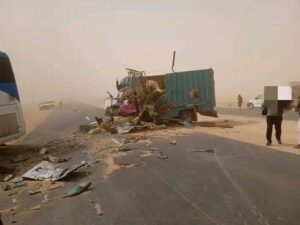 الحاذث خلف وفاة شخصين وإصابة 15 شخص 3 منهم في حالة حرجة في حادث سير في اصطدام حافلة ستيام مع شاحنة لنقل الأغنام على بعد 30 كلم من مدينة العيون وقد تم نقل المصابين الى المستشفى بن المهدي بمدينة العيون وأنباء عن تسجيل حالة وفاة يتعلق الأمر بسائق الحافلة.